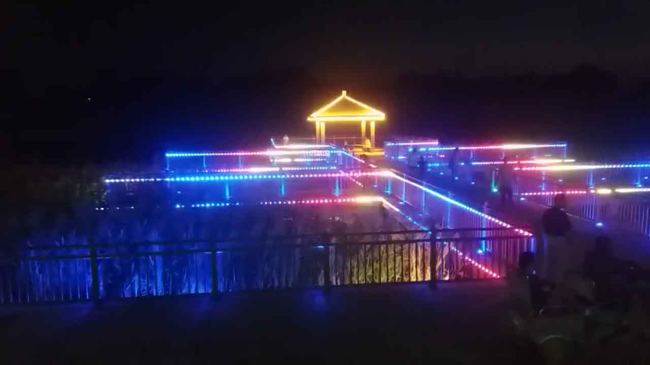湖邊亭子亮化實(shí)景